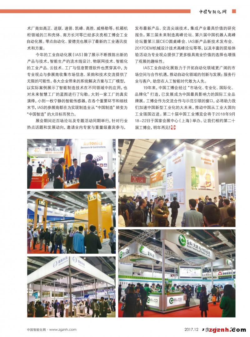 2017年11月11日,第十九屆中國國際工業(yè)博覽會(huì)在上海四葉草(國家會(huì)展中心)圓滿閉幕。歷時(shí)5天的本屆中國工博會(huì)以“創(chuàng)新、智能、綠色”為主題,以展示、推廣信息化與工業(yè)化深度融合的數(shù)字化、網(wǎng)絡(luò)化、智能化為主線,鏈接《中國制造2025》重點(diǎn)推進(jìn)的新興產(chǎn)業(yè),凸顯國家“一帶一路”倡議,凸顯智能制造、綠色制造,服務(wù)制造強(qiáng)國戰(zhàn)略。共吸引境內(nèi)外專業(yè)觀眾超16萬人次,較上屆增長6.67%。本屆工博會(huì)共設(shè)9大主題,其中最熱門的當(dāng)屬工業(yè)自動(dòng)化展(IAS)它以“‘聯(lián)’接智能,助力未來制造”為主題,亮相5.1和6.1館,展示規(guī)模56,000㎡,來自20多個(gè)國家和地區(qū)逾600家參展企業(yè)將共赴IAS規(guī)模空前的新一屆盛會(huì)。