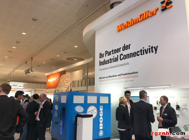 展臺上一個藍色的大家伙相當吸睛,這是魏德米勒的小伙伴壓縮機制造商Boge帶來的新成果——HST 220高性能壓縮機。它采用了魏德米勒用于預防性維護的工業(yè)分析軟件,直接在機器上調(diào)整參數(shù)設置,分析軟件幾分鐘內(nèi)便可以檢測修正后的框架條件,并使用特殊的算法來預測修改操作后可能的失敗概率,在運行過程中提前預告錯誤。