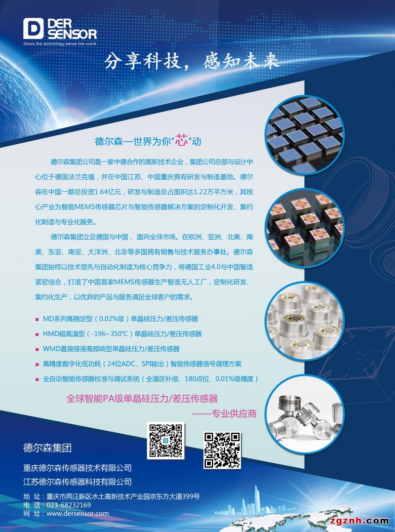 德爾森集團公司是一家中德合作的高新技術(shù)企業(yè),集團公司研發(fā)中心與生產(chǎn)制造基地分別位于德國法蘭克福、中國重慶、中國張家港。德爾森總投資2.8億元,研發(fā)與制造總占面積達3.5萬平方米,其核心產(chǎn)業(yè)為智能MEMS傳感器芯片與定制化系統(tǒng)化傳感器解決方案的開發(fā)、制造與服務。