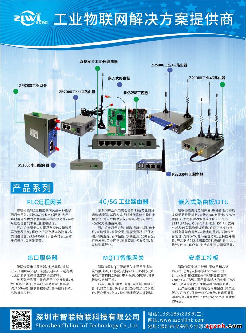 深圳市智聯(lián)物聯(lián)科技有限公司是一家專業(yè)從事無線數(shù)據(jù)傳輸終端、M2M通信、物聯(lián)網(wǎng)產(chǎn)品和解決方案研發(fā)、生產(chǎn)、銷售和技術(shù)服務(wù)的企業(yè)。是行業(yè)內(nèi)具有技術(shù)實(shí)力的無線數(shù)據(jù)傳輸終端整體解決方案和服務(wù)的提供商之一。公司成立以來,為各行各業(yè)提供基于移動通信M2M系列產(chǎn)品和解決方案,遍及智能電力、智能交通、智能消防、智能家居、智慧水利、智慧醫(yī)療、自助終端、公共安全、安防通信、工業(yè)監(jiān)測、環(huán)境保護(hù)、環(huán)境監(jiān)測、路燈照明、花卉栽培、車載Wifi等多個領(lǐng)域。公司業(yè)務(wù)持續(xù)、穩(wěn)定、健康、快速發(fā)展。