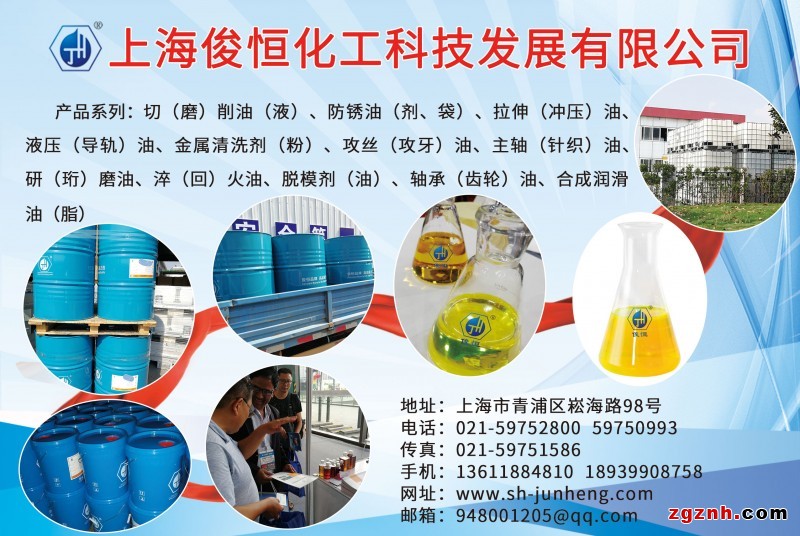 上海俊恒化工科技發(fā)展有限公司成立于2010年6月,位于上海大虹橋經(jīng)濟帶的趙巷新城開發(fā)區(qū),注冊資本500萬,一流領(lǐng)先的產(chǎn)品和資深技術(shù)團隊,是專業(yè)致力于機械設(shè)備用油(脂),金屬加工用油(液),防銹油(劑,膜,脂),工業(yè)清洗劑(粉),脫模劑系列 ,色漿系列,成型工藝用油和工業(yè)產(chǎn)品助劑八大系列數(shù)百種產(chǎn)品的研發(fā)、 生產(chǎn)、 銷售和技術(shù)服務(wù)的企業(yè)。