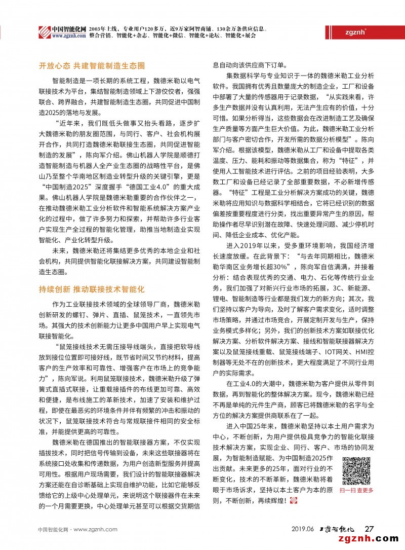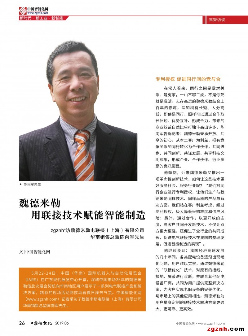 zgznh®訪魏德米勒電聯(lián)接(上海)有限公司華南銷售總監(jiān)陳向軍先生