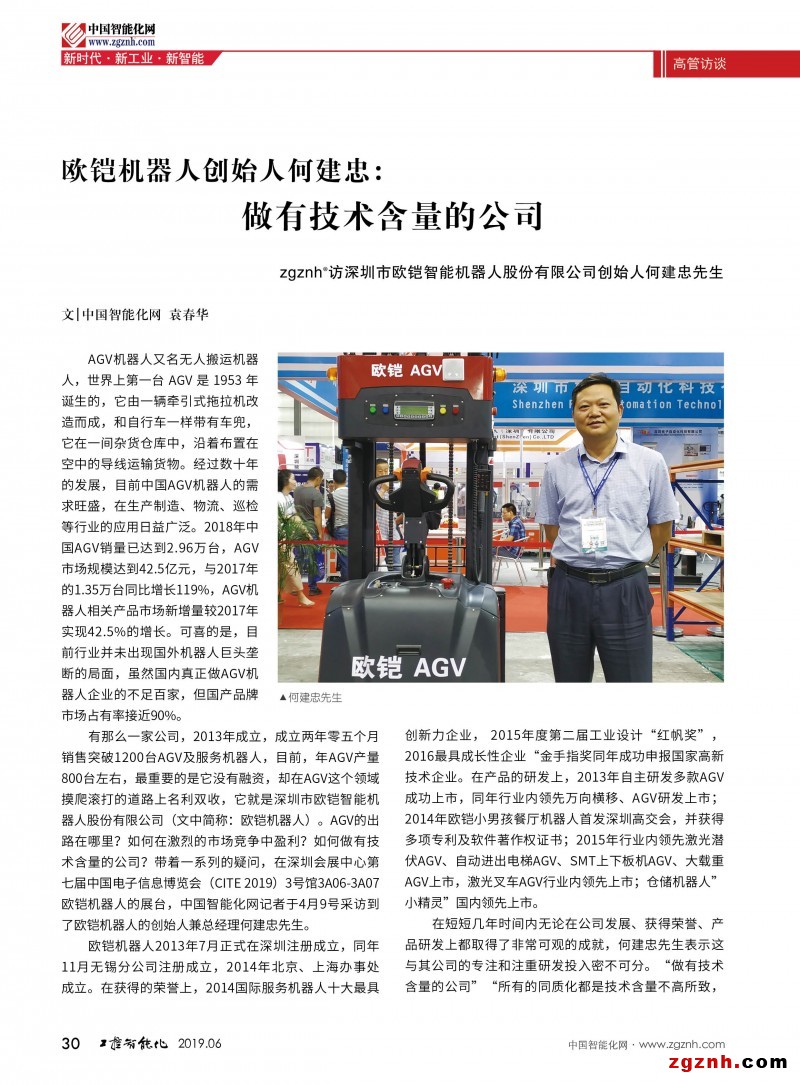 zgznh®訪深圳市歐鎧智能機(jī)器人股份有限公司創(chuàng)始人何建忠先生