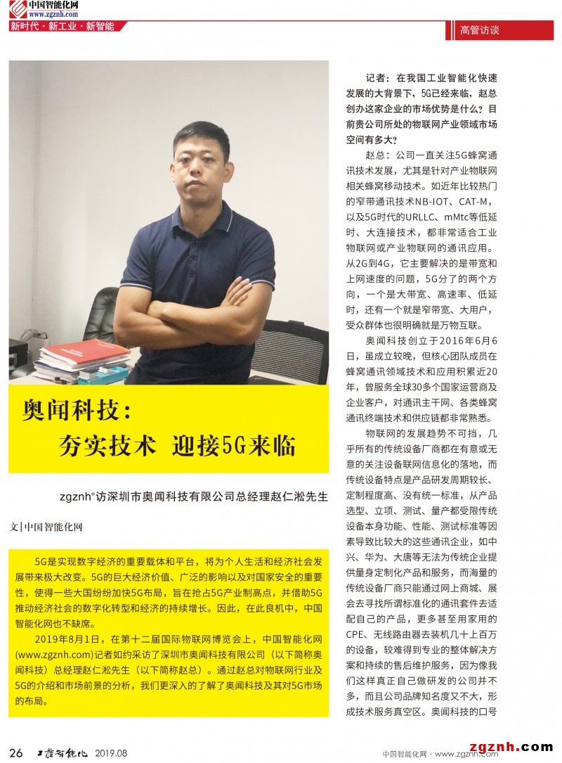 zgznh®訪深圳市奧聞科技有限公司總經(jīng)理趙仁淞先生