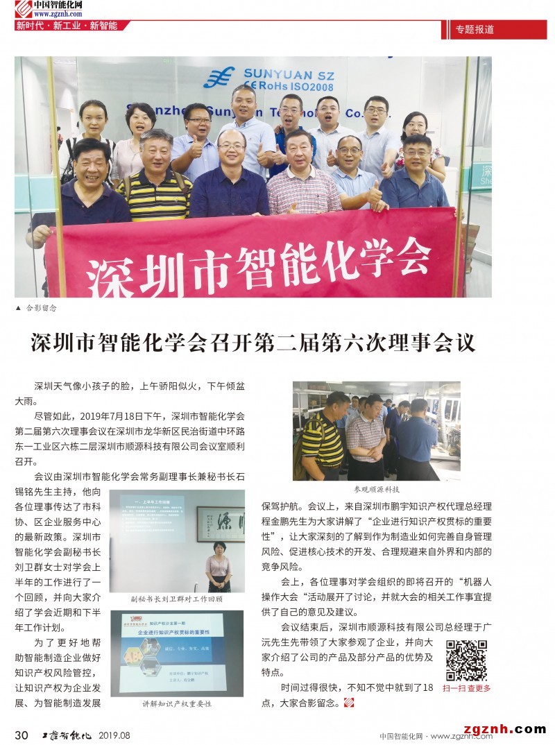 深圳市智能化學(xué)會召開第二屆第六次理事會議