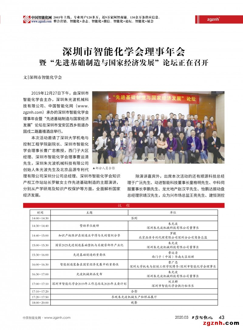 深圳市智能化學會理事年會暨“先進基礎制造與國家經濟發(fā)展”論壇正在召開
