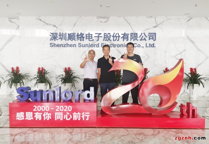 正值順絡電子成立20周年之際,三位老總在20周年標牌前合影留念。