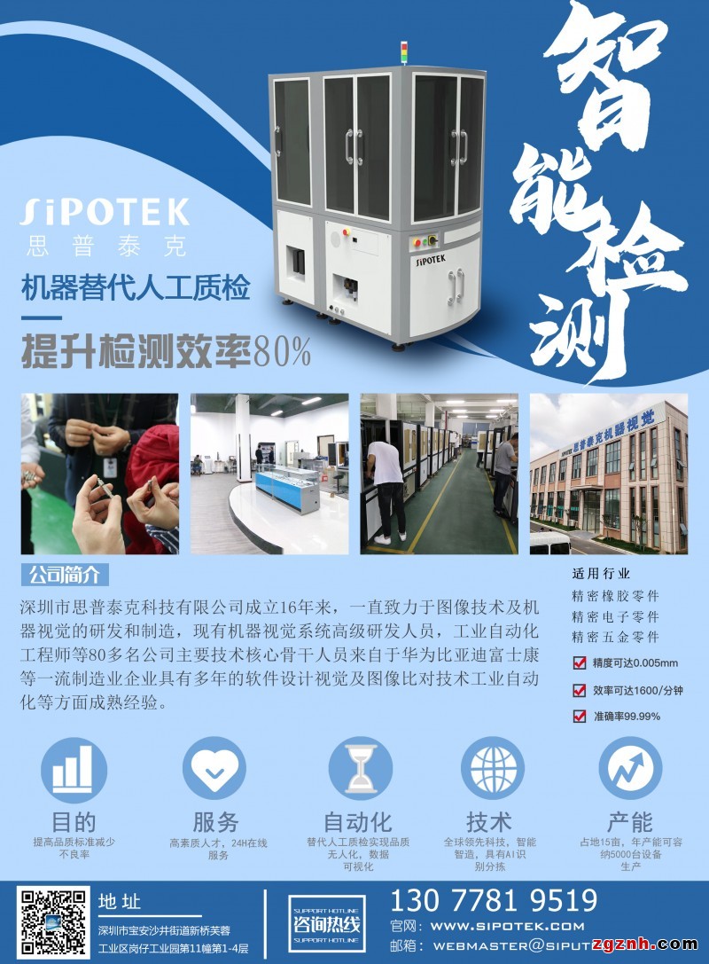 深圳市思普泰克科技有限公司成立16年來,一直致力于圖像技術(shù)及機(jī)器視覺的研發(fā)和制造,現(xiàn)有機(jī)器視覺系統(tǒng)高級(jí)研發(fā)人員,工業(yè)自動(dòng)化工程師等70多名。 公司主要技術(shù)核心骨干人員來自于華為,比亞迪,富士康等一流制造業(yè)企業(yè),具有多年的軟件設(shè)計(jì),視覺及圖像比對(duì)技術(shù),工業(yè)自動(dòng)化等方面成熟經(jīng)驗(yàn)。 公司2014年在上海成立軟件研發(fā)中心,主要針對(duì)3D機(jī)器視覺系統(tǒng),3D建模應(yīng)用軟件進(jìn)行研發(fā),引領(lǐng)視覺系統(tǒng)新標(biāo)桿。 經(jīng)過多年創(chuàng)新和研發(fā)沉淀,2013年公司榮獲“國(guó)家高新技術(shù)企業(yè)”稱號(hào),擁有多項(xiàng)發(fā)明和創(chuàng)新專利,并得到深圳市政府和創(chuàng)新委大力扶持。 公司研發(fā)制造的機(jī)器視覺系統(tǒng)得到很多國(guó)際知名企業(yè)如:美的,富士康,奇瑞汽車,比亞迪等實(shí)際運(yùn)用,并獲得好評(píng)。 隨著工藝4.0的到來,我們的團(tuán)隊(duì)將提供更好的系統(tǒng)產(chǎn)品和服務(wù),讓客戶享受更優(yōu)質(zhì)的科技成果。