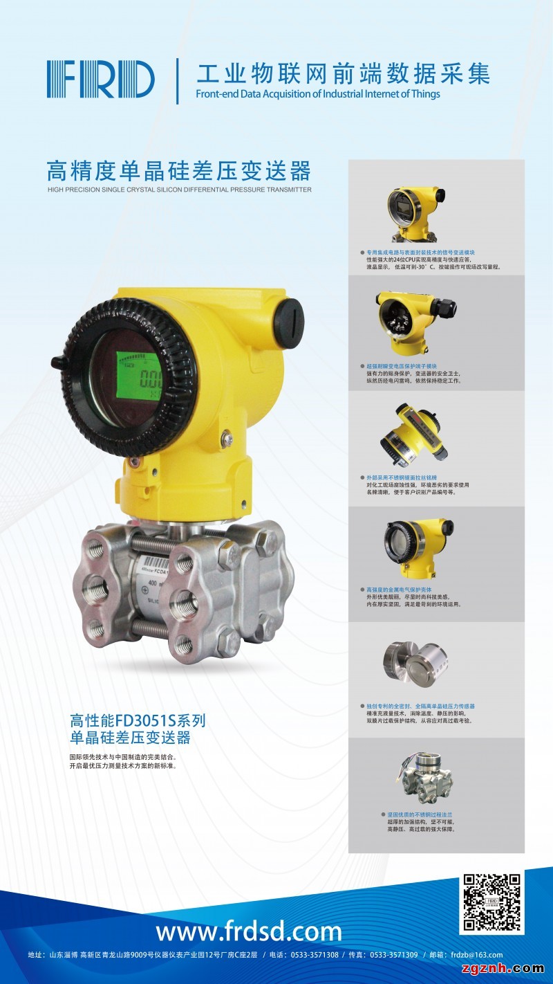 公司創(chuàng)建于2002年,擁有十多年壓力、差壓、溫度、流量等傳感器、變送器的設(shè)計、研發(fā)和生產(chǎn)制造經(jīng)驗,秉承技術(shù)創(chuàng)新和管理創(chuàng)新的精神,福瑞德潛心工藝技術(shù),以“準(zhǔn)確、專業(yè)、可靠”的生產(chǎn)理念,為顧客提供各種工業(yè)自動化現(xiàn)場儀表與監(jiān)測解決方案。產(chǎn)品覆蓋壓力變送器、差壓變送器、溫度儀表、流量計、物聯(lián)網(wǎng)末端采集與無線傳輸裝置,是廣大用戶可信賴的傳感器、變送器及工業(yè)自動化控制系統(tǒng)系統(tǒng)解決方案提供商。