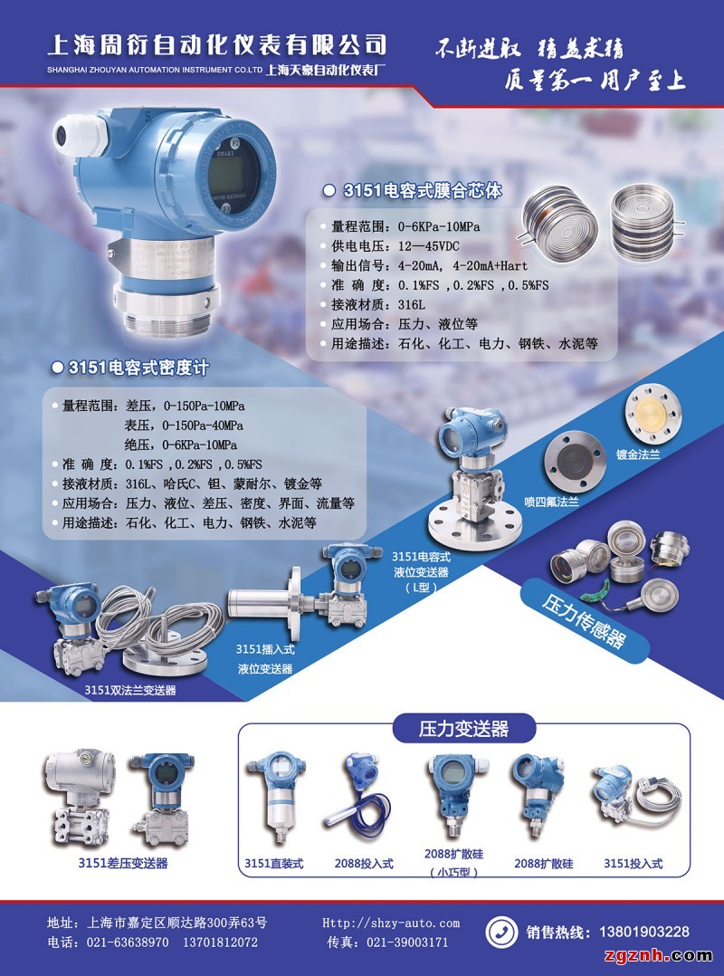 周衍自動化儀表生產(chǎn)的TH1151、TH3151壓力傳感器芯體(敏感元件)、電容式變送器品種齊全,年產(chǎn)量為3萬多臺,隨時可以滿足用戶需求。