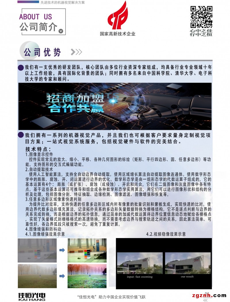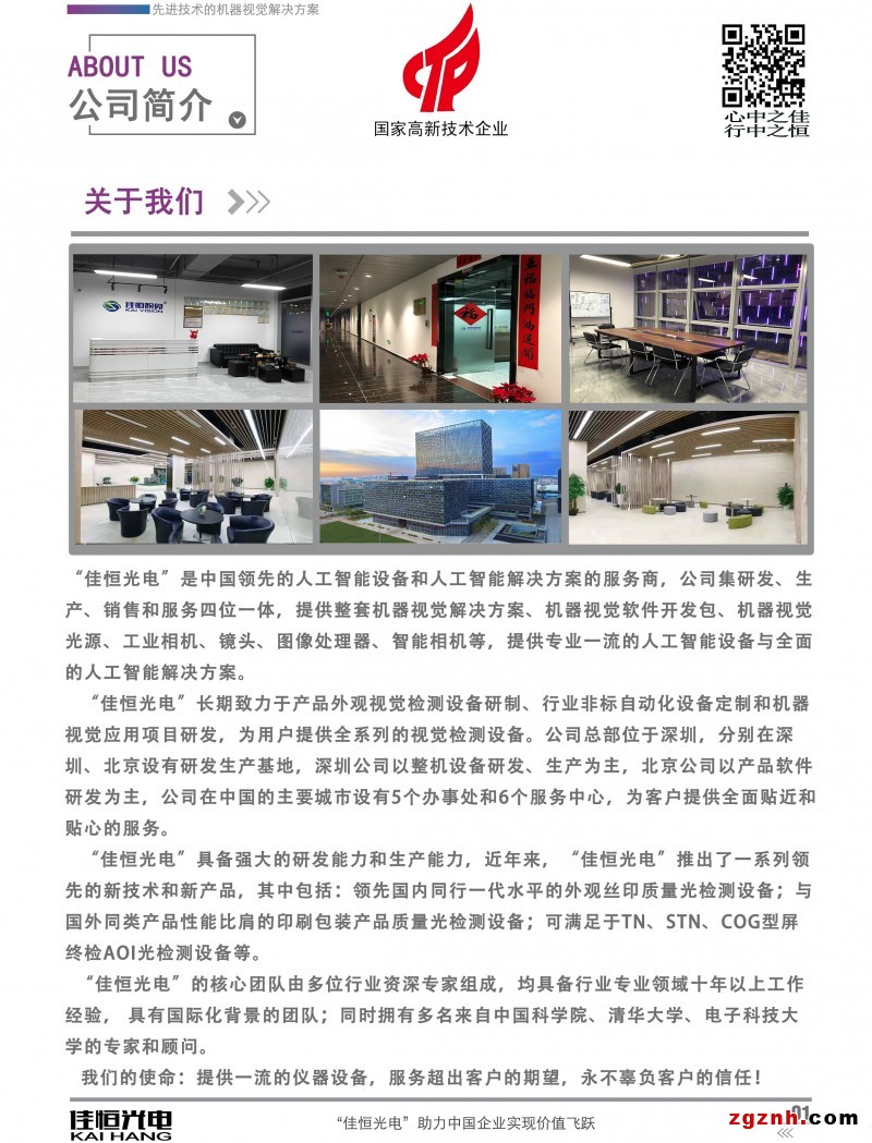 深圳市佳恒光電科技有限公司總部位于深圳市龍崗區(qū)寶龍街道智慧家園高新產(chǎn)業(yè)園內(nèi),是國(guó)內(nèi)一家擁有領(lǐng)先技術(shù)的人工智能設(shè)備和人工智能解決方案的服務(wù)商,公司集研發(fā)、生產(chǎn)、銷售和服務(wù)四位一體,提供整套機(jī)器視覺解決方案、機(jī)器視覺軟件開發(fā)包、機(jī)器視覺光源、工業(yè)相機(jī)、鏡頭、圖像處理器、智能相機(jī)等,專業(yè)提供一流的人工智能設(shè)備與全面的人工智能解決方案。