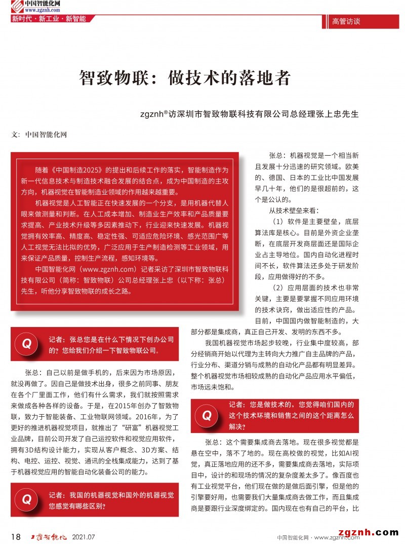 ——訪深圳市智致物聯(lián)科技有限公司總經(jīng)理張上忠先生