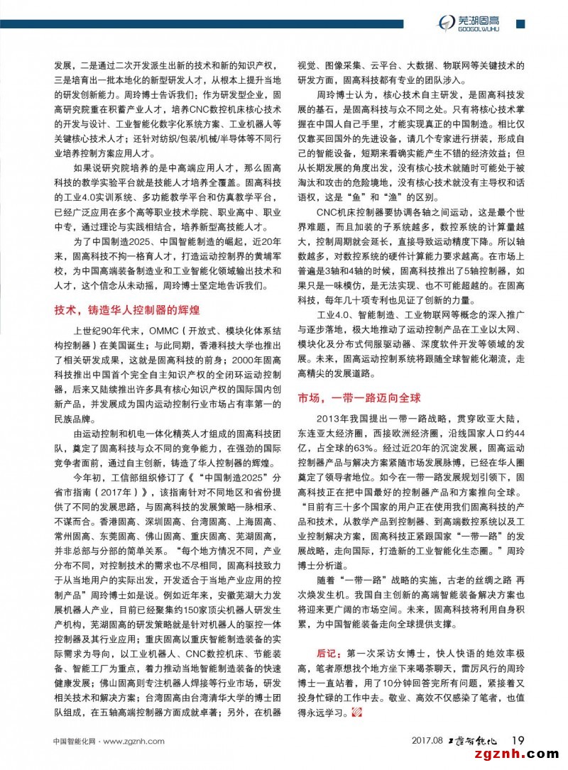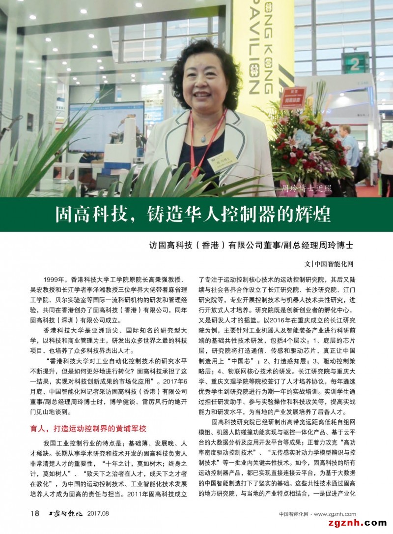 “香港科技大學(xué)對(duì)工業(yè)自動(dòng)化控制技術(shù)的研究水平不斷提升,但是如何更好地進(jìn)行轉(zhuǎn)化?固高科技承擔(dān)了這一結(jié)果,實(shí)現(xiàn)對(duì)科技創(chuàng)新成果的市場(chǎng)化應(yīng)用”。2017年6月底,中國(guó)智能化網(wǎng)記者采訪固高科技(香港)有限公司董事/副總經(jīng)理周玲博士時(shí),博學(xué)健談、雷厲風(fēng)行的她開門見山地談到。