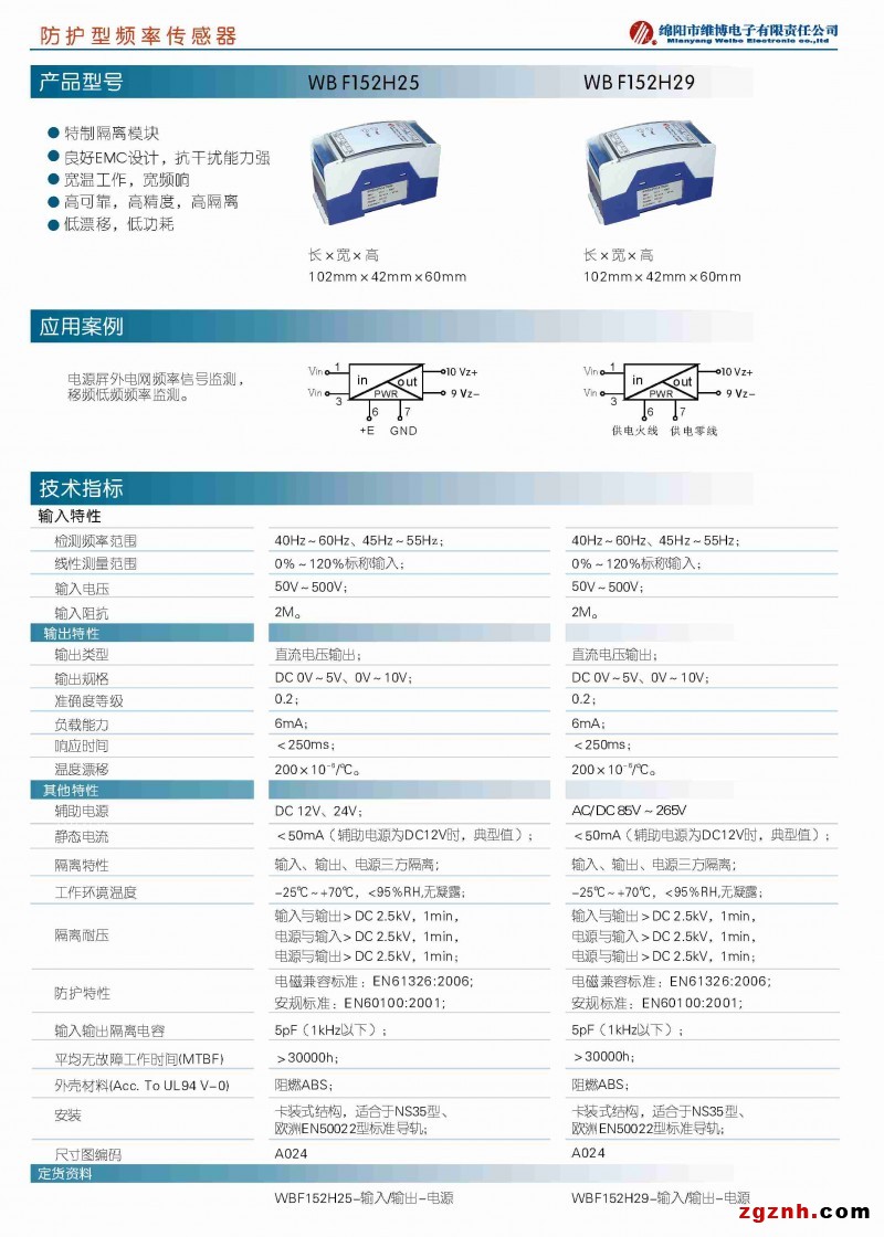 維博電子 WB F152H25 防護(hù)型頻率傳感器 電量隔離傳感器