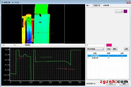 新增剖面工具:主要應(yīng)用于3D圖像的分析與處理,可以實時查看分析3D輪廓截面的高度曲線走勢,從而設(shè)置準(zhǔn)確的閾值來判斷產(chǎn)品輪廓區(qū)間高度、兩點間高度、輪廓夾角等。