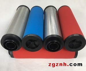 壓縮空氣中的污染物主要有兩種,一種是被吸入壓縮機的大氣污染物,其中80%直徑在2μm以下;另一種是壓縮機的帶出物,呈煙霧狀態(tài),消散開來便成為0.01~0.8μm的氣溶膠。一般性質(zhì)的濾芯可以除掉大部份液體和固體物質(zhì)微粒,其粒徑一般大于1μm,而要除掉微小的固體粒子以及油水的氣溶膠,就必須采用精密濾芯。