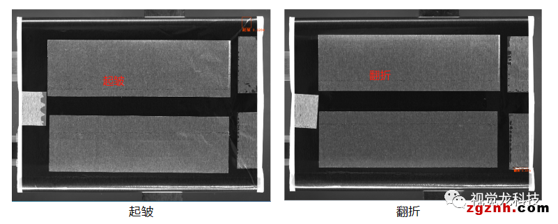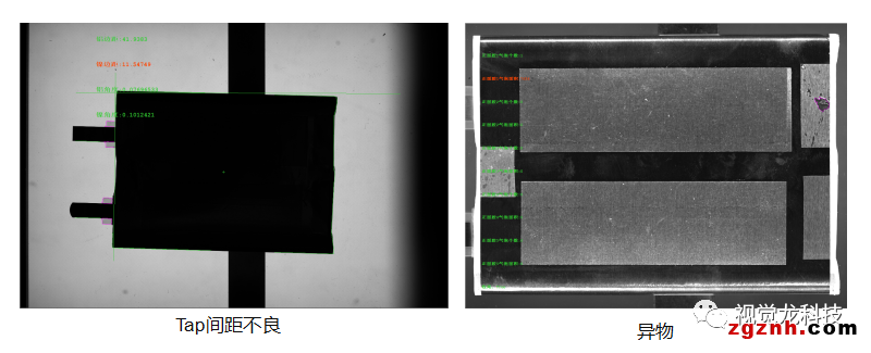 軟包電池外觀檢查超過40多項(xiàng),涵蓋了產(chǎn)品的所有外觀面以及邊角。如膠紙氣泡、膠紙起皺、極片缺陷、tab間距、異物、凸點(diǎn)、翻折、壓痕、刮傷、尺寸及歪斜等,還可以兼容綠膠、熱熔單面膠、熱熔雙面膠、藍(lán)膠、膠膜等。