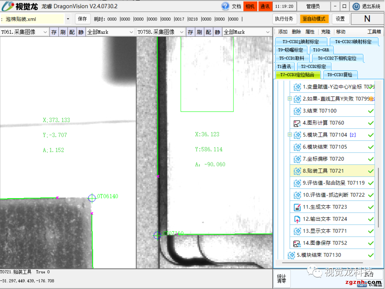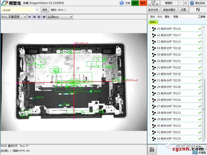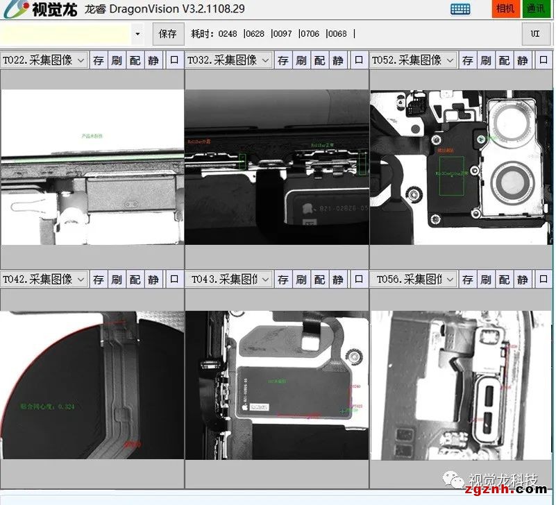 采用“龍睿專用型”的視覺對位貼合和飛拍技術(shù),通過多工位多相機(jī)分別對產(chǎn)品的不同區(qū)域元件進(jìn)行定位,同時(shí)對輔料進(jìn)行位置識(shí)別,從而引導(dǎo)機(jī)械手/模組進(jìn)行輔料貼合與復(fù)檢。