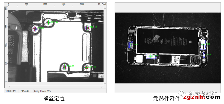 采用“龍睿標(biāo)準(zhǔn)型”的視覺定位和檢測技術(shù),首先對手機(jī)中框螺絲與內(nèi)部元件定位,實(shí)現(xiàn)螺絲和各類元件拆除。再對拆除后的區(qū)域進(jìn)行復(fù)檢,判定有無拆除完整。螺絲定位精度±0.05mm,金屬蓋板定位精度±0.1mm。