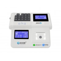 7、消費機安裝于各售飯窗口,雙面顯示,一面顯示面向就餐者掃碼或刷卡,帶操作鍵盤顯示面向收銀員。