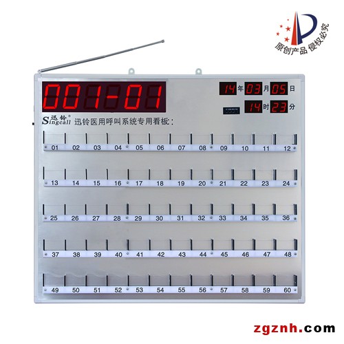 -同時(shí)顯示房間號及床位號、可儲存60個(gè)號碼滾動(dòng)顯示